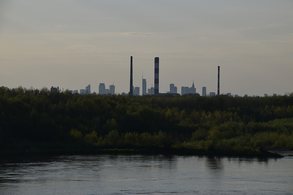 Docieram wreszcie do lini kolejowej. Po jej obu stronach biegną ulice, wybieram ta wschodnią. Chcę dotrzeć do Południowej Obwodnicy Warszawy, a potem już do domu. Droga jest uciążliwa, bo istnieje tu ścieżka rowerowa z jakiś niewydarzonych płyt. Lepiej jechać po asfalcie. Zresztą - za tabliczką z napisem "Warszawa" kończy się jakakolwiek forma ścieżki rowerowej i nie ma wyjścia. Węzeł przy POW też jest dość skomplikowany i brak oznaczeń jak jechać. Muszę posiłkować się mapą w telefonie, bo jego pokonanie nie jest wcale oczywiste. W końcu jednak jadę po południowej stronie obwodnicy w kierunku Wisły. Mijam Wał Miedzeszyński, wspinam się na Most Południowy. Centrum miasta wygląda stąd jak zwykle bardzo ciekawie.